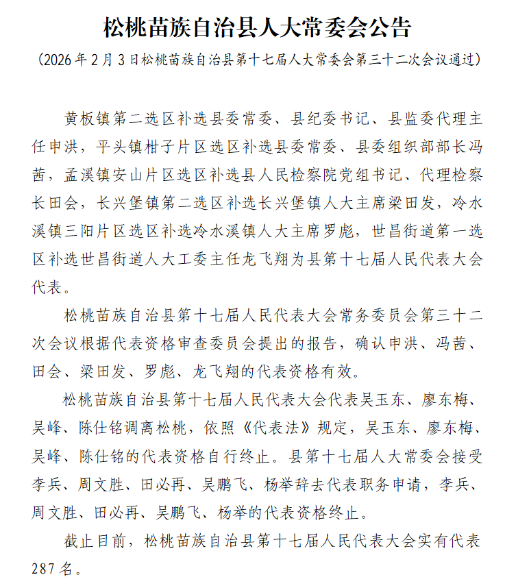 松桃苗族自治县人大常委会 公 告