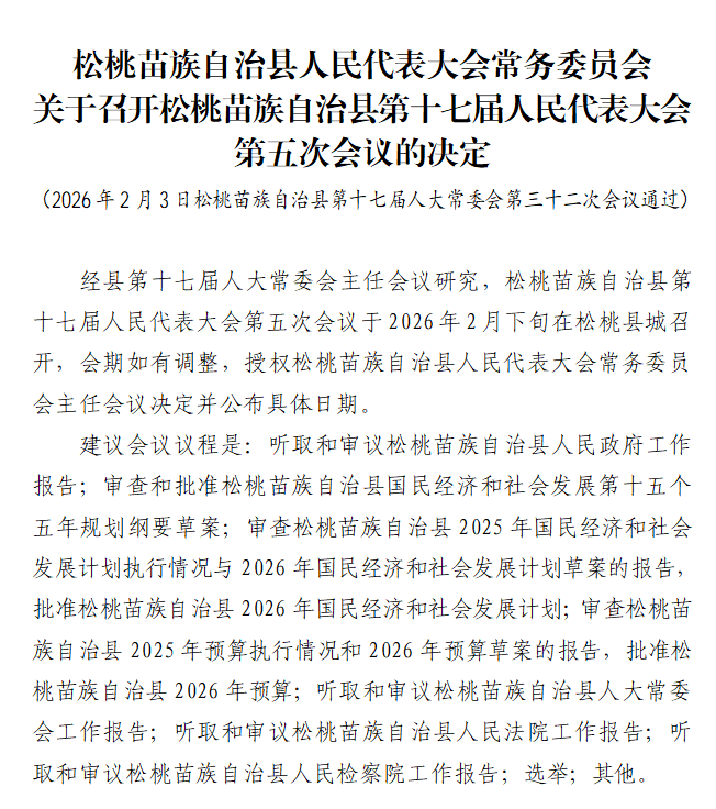 关于召开松桃苗族自治县第十七届人民代表大会第五次会议