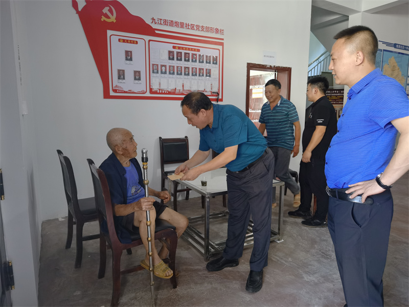 在九江街道炮里社区,县人大常委会副主任吴真发与该社区困难老党员同志石某超进行了亲切交谈,详细了解了石某超家中子女就业情况,鼓励他要积极面对生活。同时吴真发表示,相关部门及乡镇要积极落实党和国家的民生政策,满腔热情地帮助困难党员解决生活中的实际问题,切实解决他们生活上的困难。