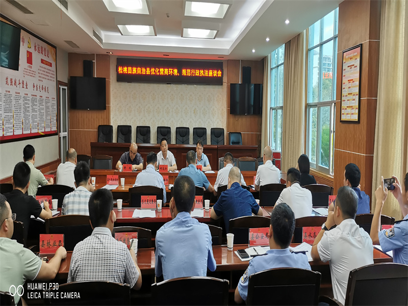 8月31日,松桃苗族自治县人大常委会组织召开松全县优化营商环境、规范行政执法座谈会。县委常委、县委政法委书记何支六,县人民政府副县长、县公安局局长舒鸿出席会议并讲话,县人大常委会副主任龙秀福主持会议并讲话。