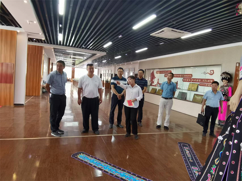 随后,龙健清一行走进县中等职业技术学校,实地参观了“四中心两室一基地”、民族文化陈列馆、苗绣版《千里江山图》等,认真聆听了优秀教师代表吴仙花的精彩讲解,龙健清为吴仙花老师的敬业精神及对松桃教育的积极贡献表示衷心地感谢。
