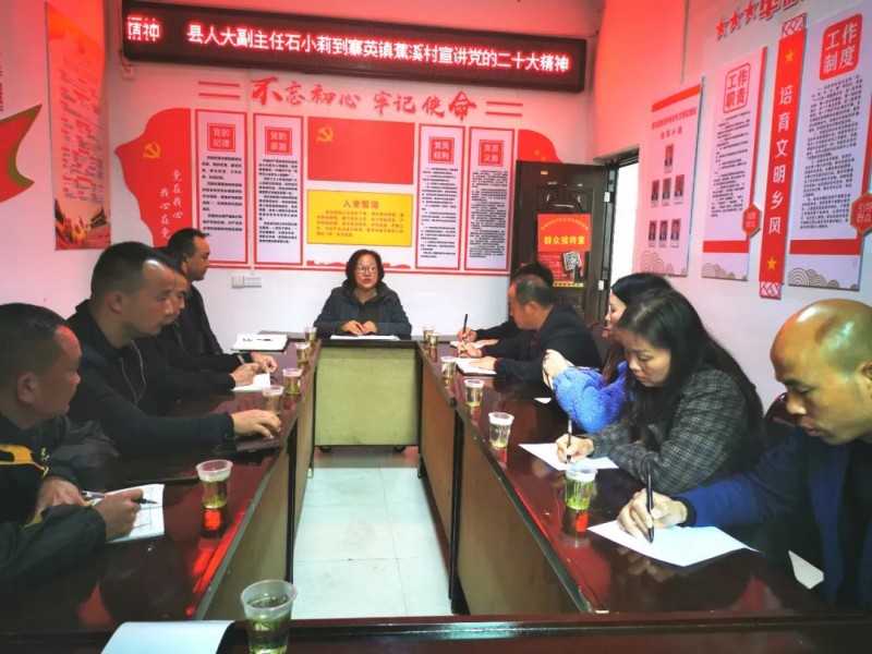 11月17日,县人大常委会副主任石小莉深入寨英镇焦溪村宣讲党的二十大精神,县人大教科文卫委,村支两委、驻村干部、全体在家党员干部及部分群众代表聆听宣讲。