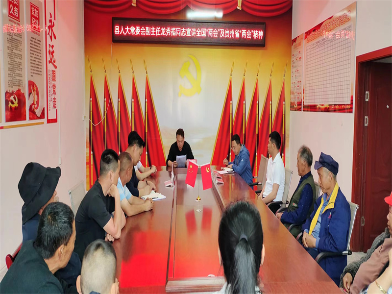 4月20日至4月21日,县人大常委会副主任龙秀福先后到鼎鑫商砼公司、长兴堡岩科村宣讲全国“两会”和省“两会”精神。鼎鑫商砼公司全体成员、岩科村在家党员干部、部分群众聆听宣讲,县人大法制委、县司法局、长兴堡镇相关负责人陪同。