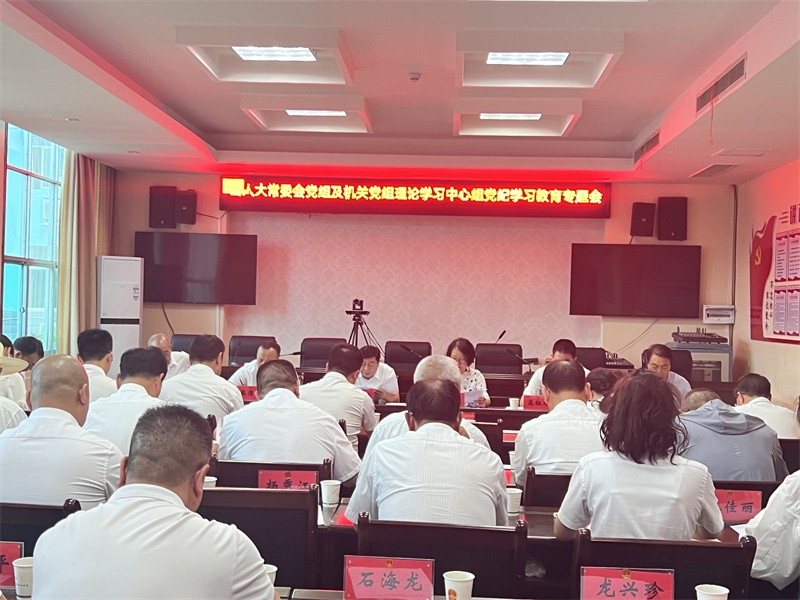 6月6日,在县行政中心第三会议室召开县人大常委会党组及机关党组理论学习中心组党纪学习教育专题学习会议。县人大常委会主任石敏主持并参加会议,县人大常委会副主任石小莉、麻清馨、高祖顺、龙秀福以及退休老领导麻绍平、唐永明、张秀国和机关全体干部职工参加了会议。