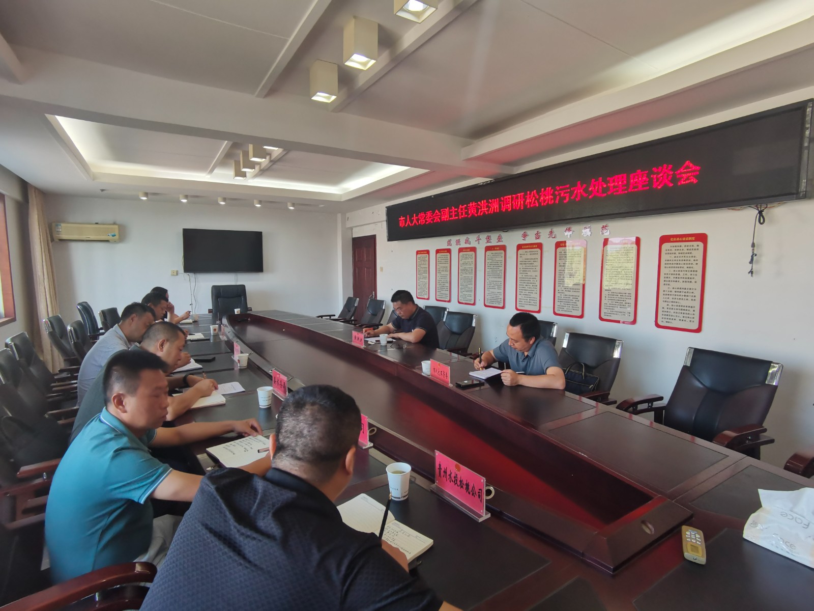 8月22日,在县人大五楼会议室黄洪洲主持召开了全县污水处理座谈会,分别听取了县水务局、贵州水投松桃公司、县供排水公司和县住建局关于对全县污水处理情况的汇报。黄洪洲指出污水处理是一项重要的民生工程,是推动生态环境质量持续改善的重要举措,对提高人民群众生活质量,改善水生态环境,促进经济社会发展具有重要作用。各部门要高度重视城镇生活污水收集处理有关工作,持续建设涵盖污水处理厂、污水收集管网、污泥处理处置和污水资源化利用的系统工程,不断提高城镇污水收集处理能力和水平。要形成权责匹配的工作机制,加强部门之间统筹协调,站位全县的高度对待污水处理工作。要强化工作对接,项目申报,争取更多资金向污水处理领域倾斜。要发挥好在线监测作用,及时研判运行中存在的问题,采取科学应对处理措施,提升污水处理率、出水达标率等指标,确保污水稳定达标处理。