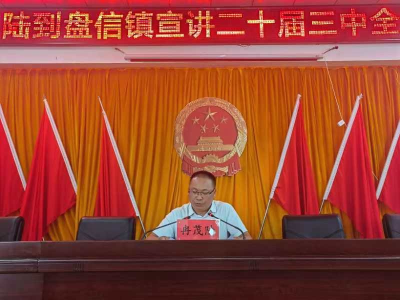 9月2日,县人大常委会副主任、镇党委书记冉茂陆到盘信镇宣讲党的二十届三中全会精神。