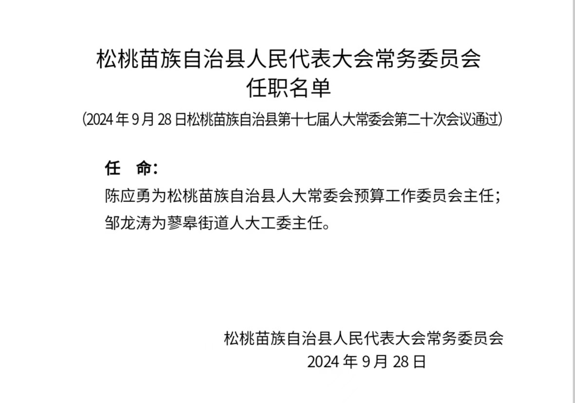 松桃苗族自治县人民代表大会常务委员会任职名单
