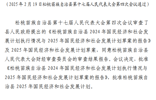 松桃苗族自治县第十七届人民代表大会第四次会议关于松桃苗族自治县2024年国民经济和社会发展计划执行情况与2025年国民经济和社会发展计划的决议