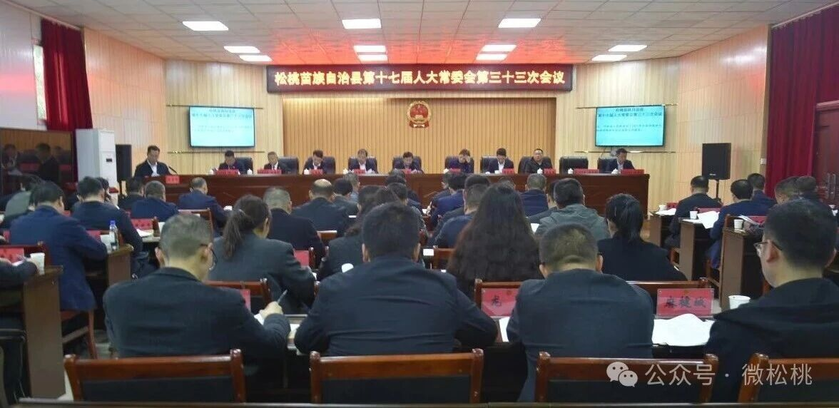 3月30日,松桃苗族自治县第十七届人大常委会第三十三次会议在县图书馆四楼会议室召开。县人大常委会主任石敏主持会议,县人大常委会副主任冉光珍、王福荣、高祖顺、龙秀福、冉茂陆出席会议。县委常委、县人民政府副县长吴文斌,县人民法院院长田孟华、县监察委员会、县人民检察院相关负责同志列席会议。